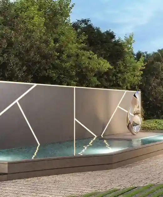 Water fountains and water bodies with built-in filtration system and lighting (as per landscape architect’s drawings).