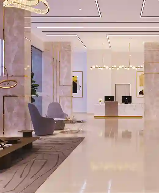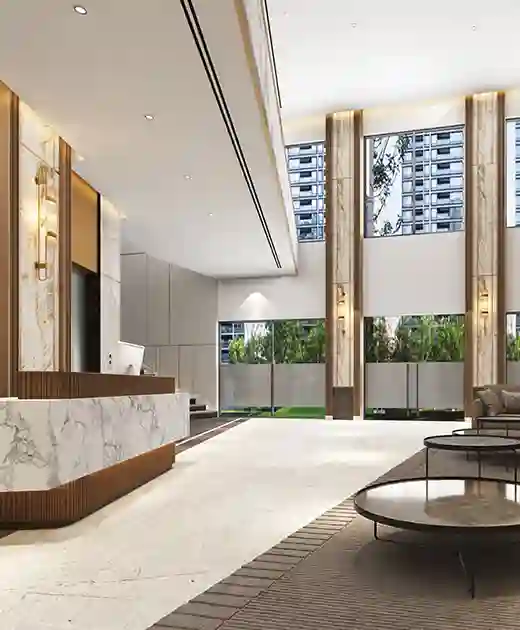 Building entrance foyer and reception lobby with Italian marble flooring as per architectural drawing.