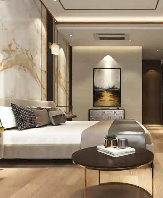 All Bedrooms: 1200 mm x 2400 mm vitrified tiles of Kajaria/Somany/RAK/equivalent make with 4" skirting flush with wall.
