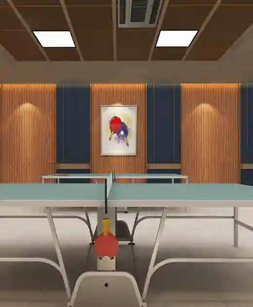 BATHROOM CEILING: Grid ceiling with 2' X 2' PVC sheets.