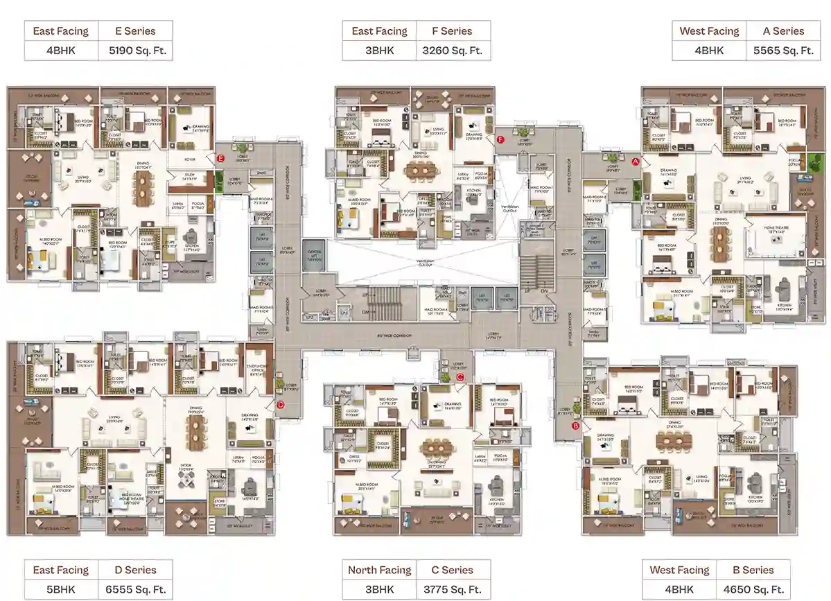 Super Structure: Earthquake-resistant RCC framed structure with Mivan aluminium shuttering to withstand wind and seismic loads. Concrete from Ultratech RMC or equivalent. Steel from TATA Steel, JSW, VSP, SAIL, Jindal Panther or equivalent make.